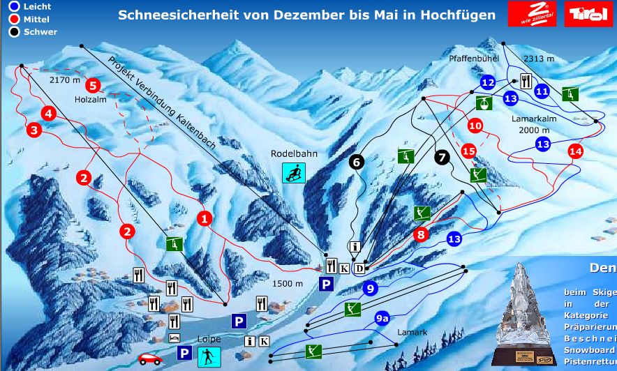 Das Skigebiet von Hochfügen liegt am Eingang des Zillertals und hat somit eine relativ kurze Anfahrt und einen geringen Staufaktor, was im Zillertal ja bekanntlich ein großes Problem ist. Das Gebiet bietet 10 Lifte, 33 Pistenkilometer und etliche traumhafte Freerideabfahrten, welche relativ leicht zu erreichen sind ( Beschreibung siehe Routes). Durch die Höhe von 1500- 2500 m sind die Schneeverhälnisse fast immer super und die längste Freerideabfahrt hat somit fast 1000 hm.
